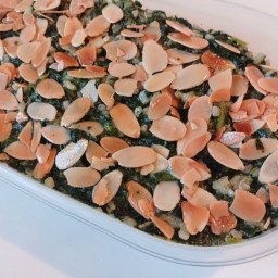 First wash the raw almonds under running water and add enough hot water to cover them and leave for 1/2 hour. When the shells are soft, crush them between your two fingers and remove the shells.