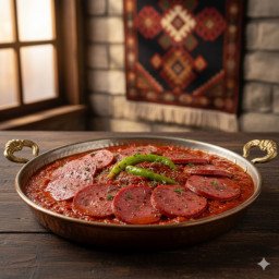 Sucuk, baharatlı ve fermente edilmiş, genellikle sığır etinden yapılan geleneksel bir Türk sucuğudur. İçerdiği yüksek protein kas gelişimini desteklerken, sarımsak ve çeşitli baharatlar (kırmızı biber, kimyon) antioksidan ve antimikrobiyal özellikler sunarak bağışıklık sistemine katkıda bulunabilir. Fermentasyon süreci bağırsak sağlığına olumlu etki edebilir. Sucuk, özellikle yumurta, kuru fasulye ve peynirle harika bir uyum sağlar. Enerji verici bir gıdadır.