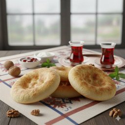 Bazlama; geleneksel Türk Mutfağında ekşi maya ile yapılan ve sacda ya da tavada pişirilen bir çeşit ekmektir. Az malzeme çok bereket demektir bazlama. Sac üzerinde ağır ağır pişsin, aş olsun. Artsın…